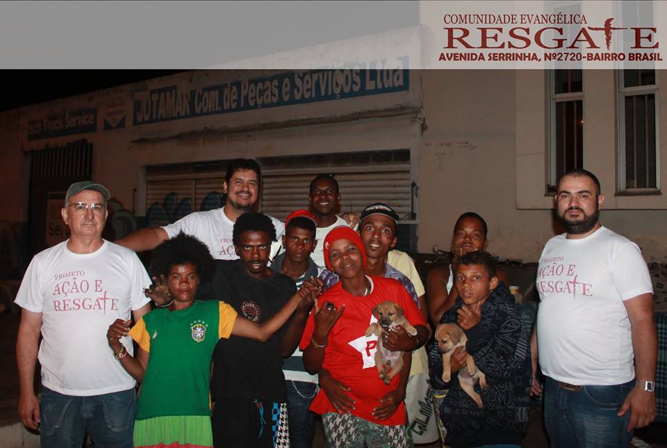 O projeto Ação Resgate é uma iniciativa da igreja Comunidade Evangélica Resgate sob a coordenação do Pastor Thiago Meira, que tem como objetivo principal resgatar um pouco da dignidade dos moradores de rua da nossa cidade, levando até eles todas as noites das segundas feiras um lanche, sanduíche, suco e chocolate, como também um abraço fraternal juntamente com orações e palavras edificante do evangelho de Jesus Cristo.O projeto conta com uma equipe de voluntários que nos ajuda na arrecadação das doações de alimentos, roupas, calçados, cobertores e brinquedos, são pessoas que com muito amor disponibilizam seu tempo para ajudar os mais necessitados. Esses mesmos voluntários participam das distribuições das doações.