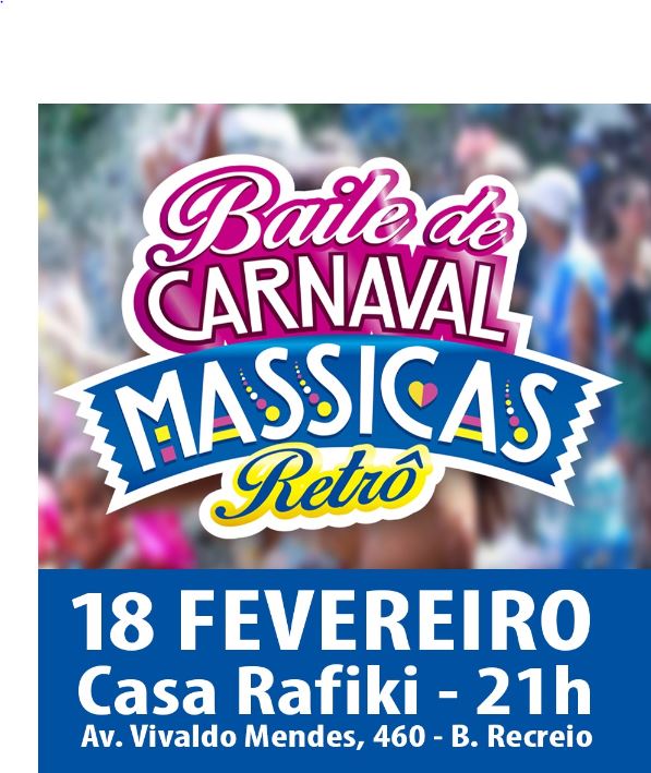 Baile de Carnaval Massicas Retrô, a festa que vai animar e trazer a folia momesca mais cedo. Em breve mais informações quanto aos preços de ingressos e locais de vendas.