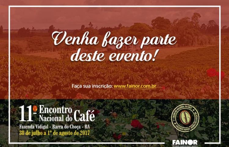 Começa no próximo dia 30 de julho e prossegue até o dia 01 de agosto o 11º Encontro Nacional do Café próximo ao município de Barra do Choça, onde fica a Fazenda Vidigal que é a realizadora do evento em conjunto com a Fainor.