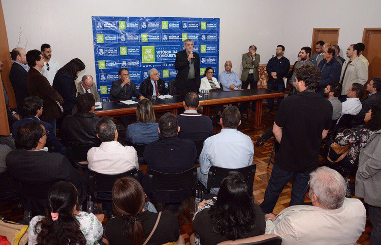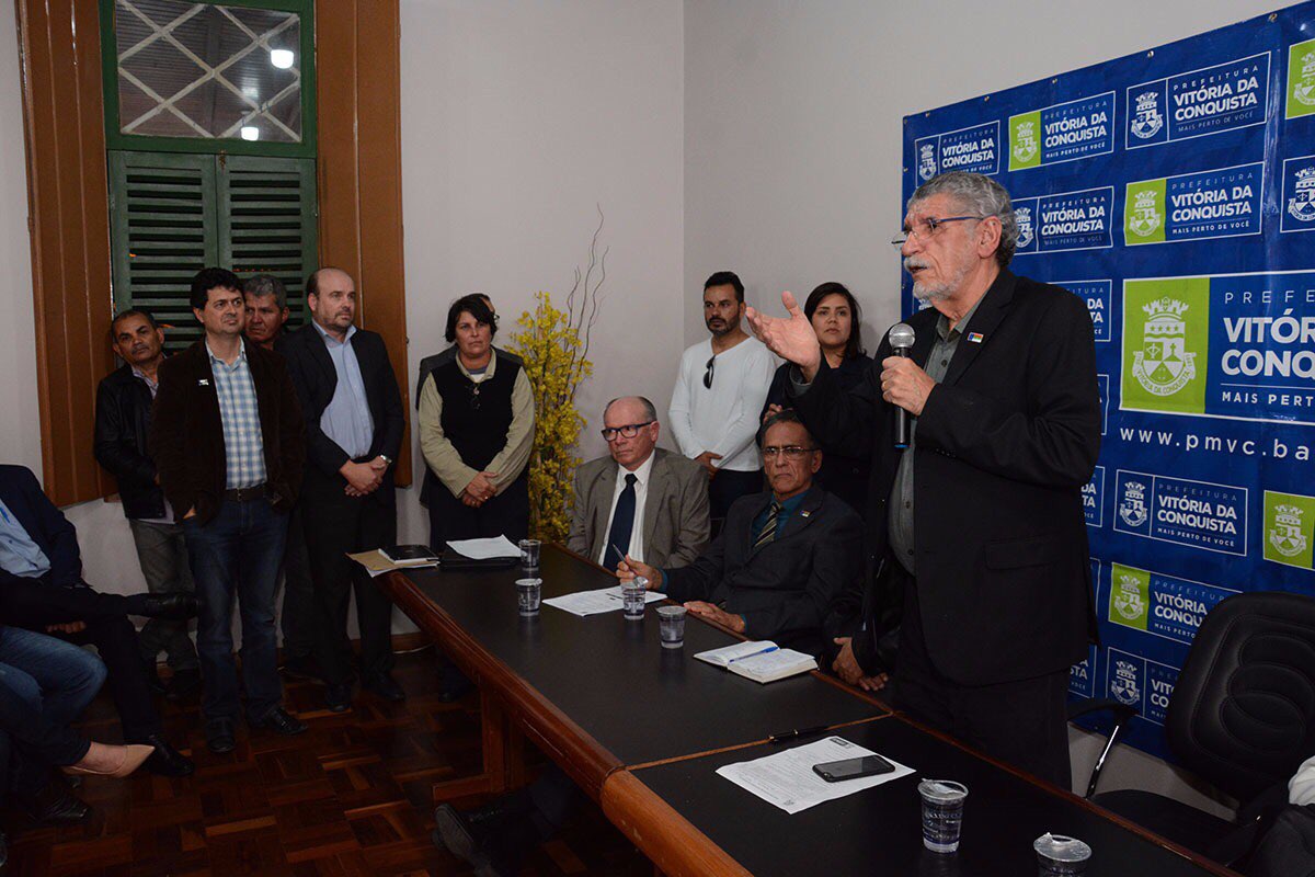 Com o salão nobre da Prefeitura completamente lotado, o prefeito Herzem Gusmão deu posse ao novo secretário da Agricultura de Vitória da Conquista, Paulo César, depois da exoneração de Arlindo Rebouças.