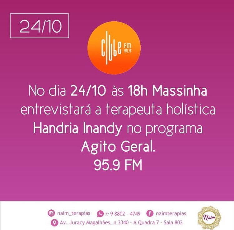 Hoje no Agito Geral a terapêutica holística, Handria Inandy, me concederá entrevista