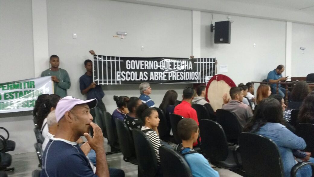 A mesa foi composta pela vice-diretora Cristiane Campos, do aluno Gabriel Almeida, do professor Ronaldo Ferraz, do sindicalista César Nolasco, além do advogado e historiador Rui Medeiros. As falas, todas, sem nenhuma exceção, foram de repúdio ao fechamento da escola. Os vereadores, em uníssono, discursaram e teceram críticas ao governo do estado, destacando a falta de conhecimento do secretário de Educação do Estado, que não teria discutido com a população o ato que ganhou proporções inimagináveis.