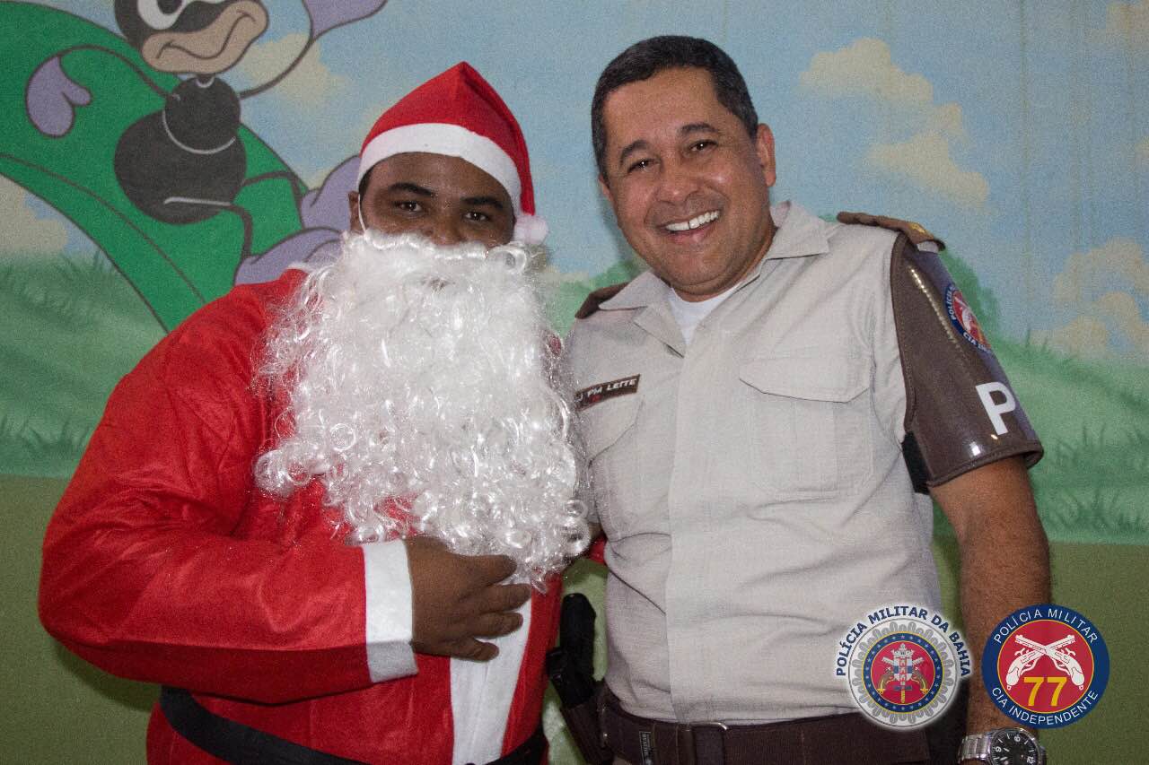 Crianças da Escola Municipal Mozart Tanajura, bairro Vila América em Vitória da Conquista foram surpreendidas nesta quarta-feira (20) por uma ação de natal, promovida pela 77ª Companhia Independente da Polícia Militar (CIPM), desenvolvida pela sua Ronda Escolar.