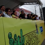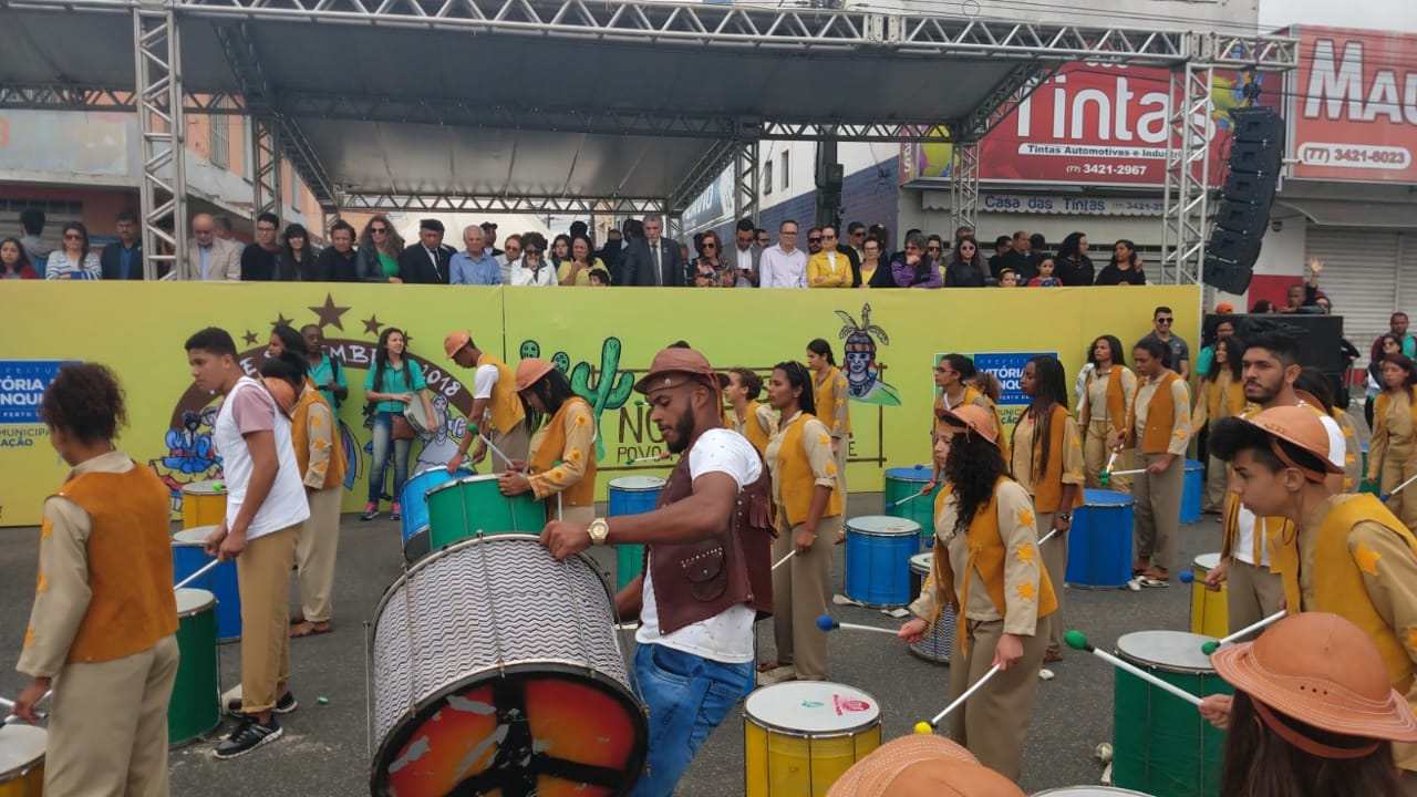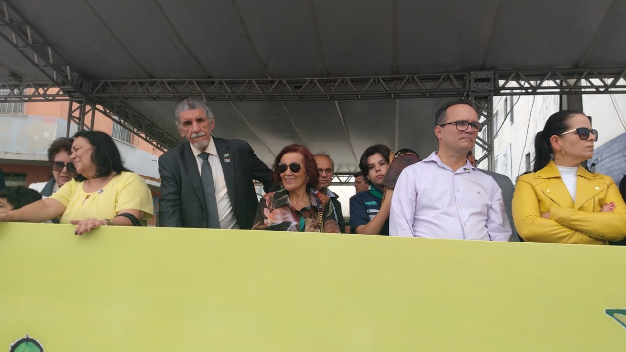 No palanque, o prefeito Herzem Gusmão, acompanhado da primeira dama Luci Freire e também da vice-prefeita Irma Lemos, além de vários secretários, senão todos, incluindo o procurador do município, Murilo Mármore.