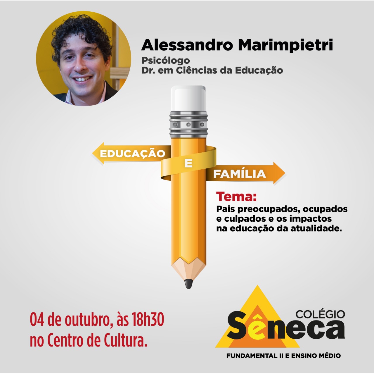 O Sêneca, cursinho pré-vestibular, está anunciando para amanhã no Centro de Cultura, às 18:30, uma importante palestra com o renomado Dr. Alessandro Marimpietri, psicólogo e Doutor em Ciência da Educação, que irá abordar um tema bastante atual e que já está despertando o interesse dos pais e de profissionais da educação.