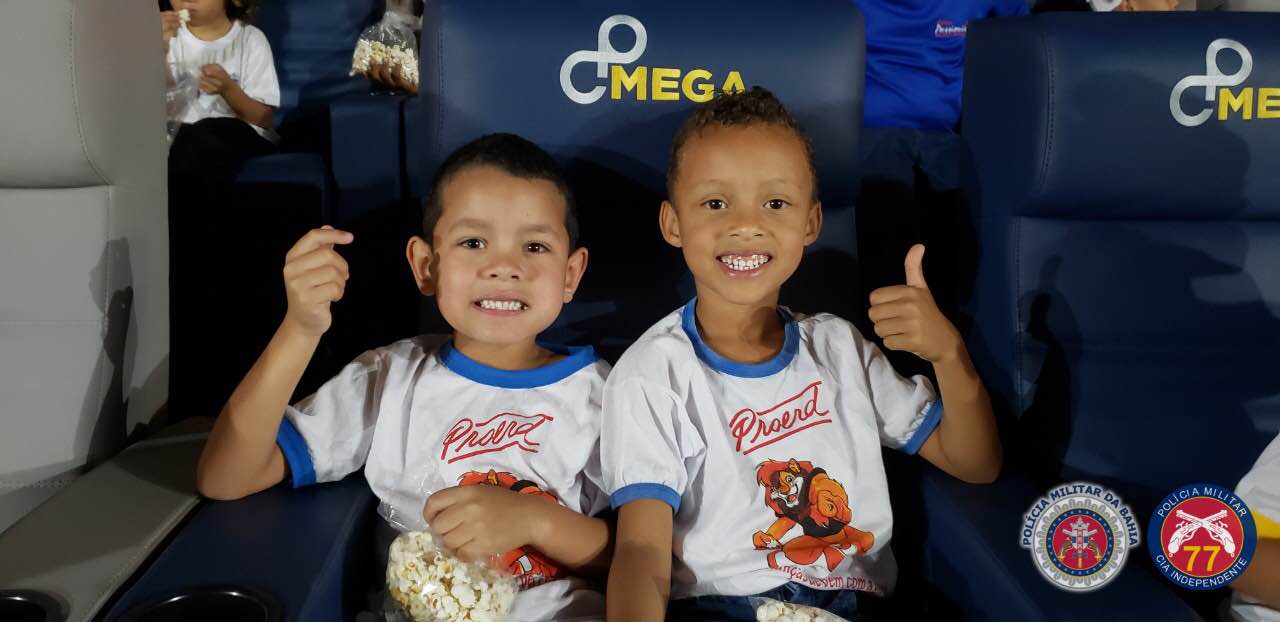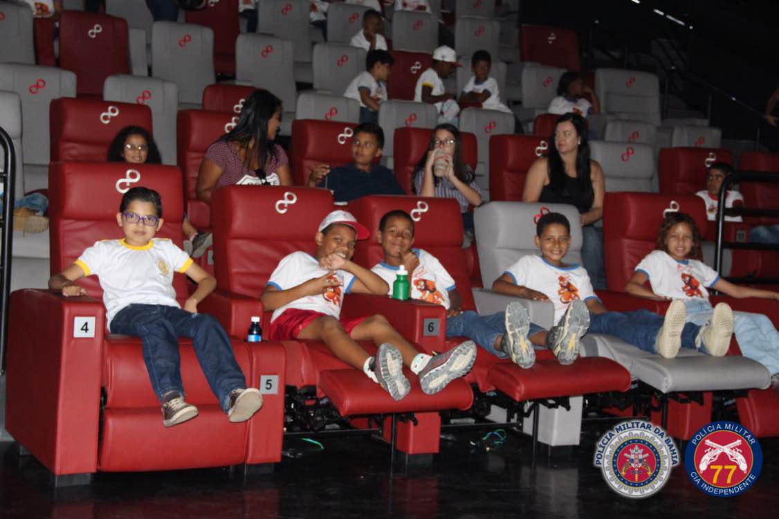 A 77ª Companhia Independente de Polícia Militar conseguiu que cerca de 400 crianças vivessem momentos especiais nesta terça-feira, dia 02 de outubro, quando puderam assistir, gratuitamente, o filme ‘Os Jovens Titãs Em Ação! Nos Cinemas’, em uma das salas de exibição da rede Centerplex Cinemas, no Boulevard Shopping em Vitória da Conquista.