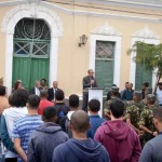 Em frente a sede da prefeitura, o Mestre de Cerimônia, Célio Santos, comandava o ritual solene de hasteamento das bandeiras e em seguida anunciava os nomes dos atletas que chegavam nos primeiros lugares.