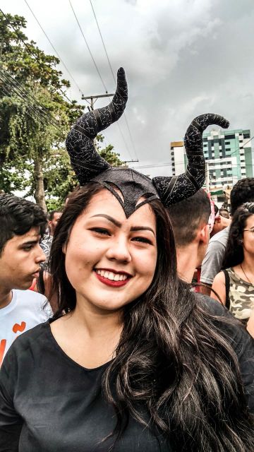 Liderados por Paulinha e Rafa Flores, um mundão de jovens alegres e felizes, cheios de sonhos e também de fantasias, fizeram um percurso atrás do trio com direito a banda e muito swing, e mostraram que corre na veia do conquistense a folia momesca.