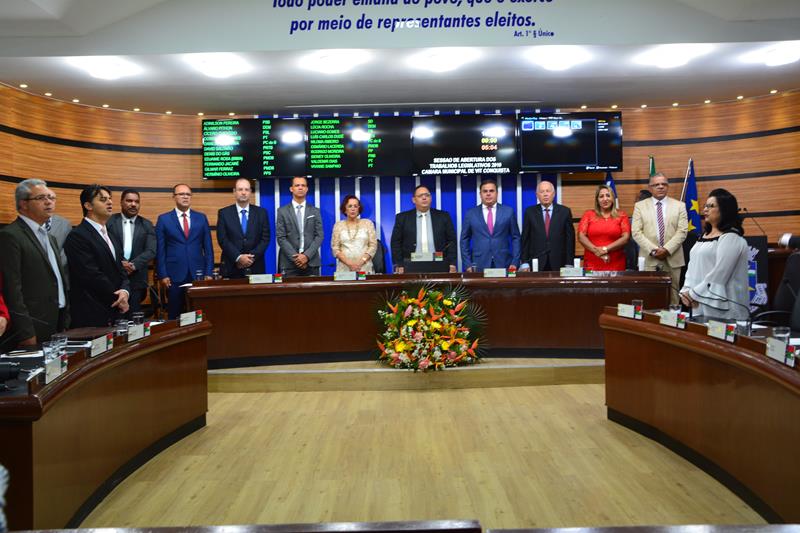O presidente Luciano Gomes conduziu os trabalhos de reabetura da Câmara Municipal de Vitória da Conquista contando com um público extraordinário que lotou o plenário Carmem Lúcia. A secretária de Desenvolvimento Social e também vice prefeita, Irma Lemos, representou o prefeito Herzem Gusmão que está em viagem ao município de Sobral, no Ceará, em companhia do secretário de Educação, Esmeraldino Correia. O Executivo prestigiou o ato levando em companhia da vice prefeita quase a totalidade dos secretários, coordenadores, além do procurador geral, Murilo Mármore.