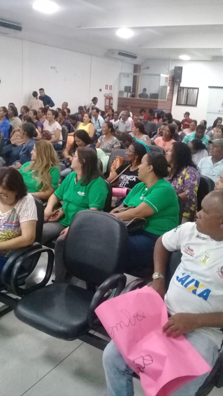 Ontem a Câmara Municipal de Vitória da Conquista esteve com as dependências tomadas por professores, pais e também por populares prestigiando a Audiência Pública convocada pelo vereador Valdemir Dias, PT, e que contou com as presenças de dois colegas de bancada, Márcia Viviane e Nildma Ribeiro. Fez-se presente também a direção do Simmp através da sua presidente que compôs a mesa.
