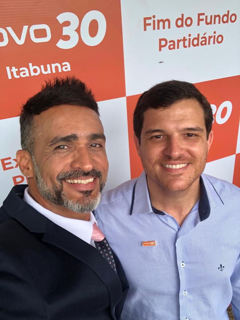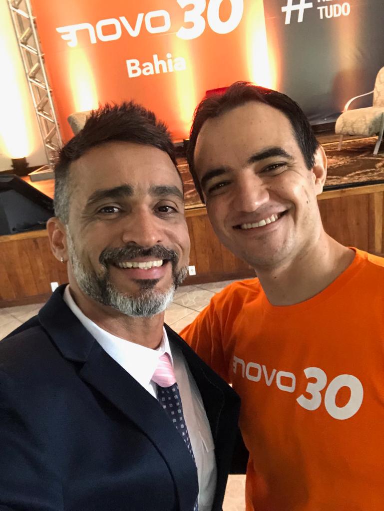 Ricardo Santana Maciel e Laudo Silva Costa Júnior, ambos do Partido Novo de Vitória da Conquista, estiveram em Itabuna na última sexta-feira representando a sigla conquistense no encontro que a terra grapiuna promoveu, através do 30, para receber o ex-presidente à presidência da República, João Amoedo, que foi prestigiar o ato de meta alcançada pelos itabunenses chegando ao número de 150 filiados, o que habilita o partido a disputar as próximas eleições municipais.