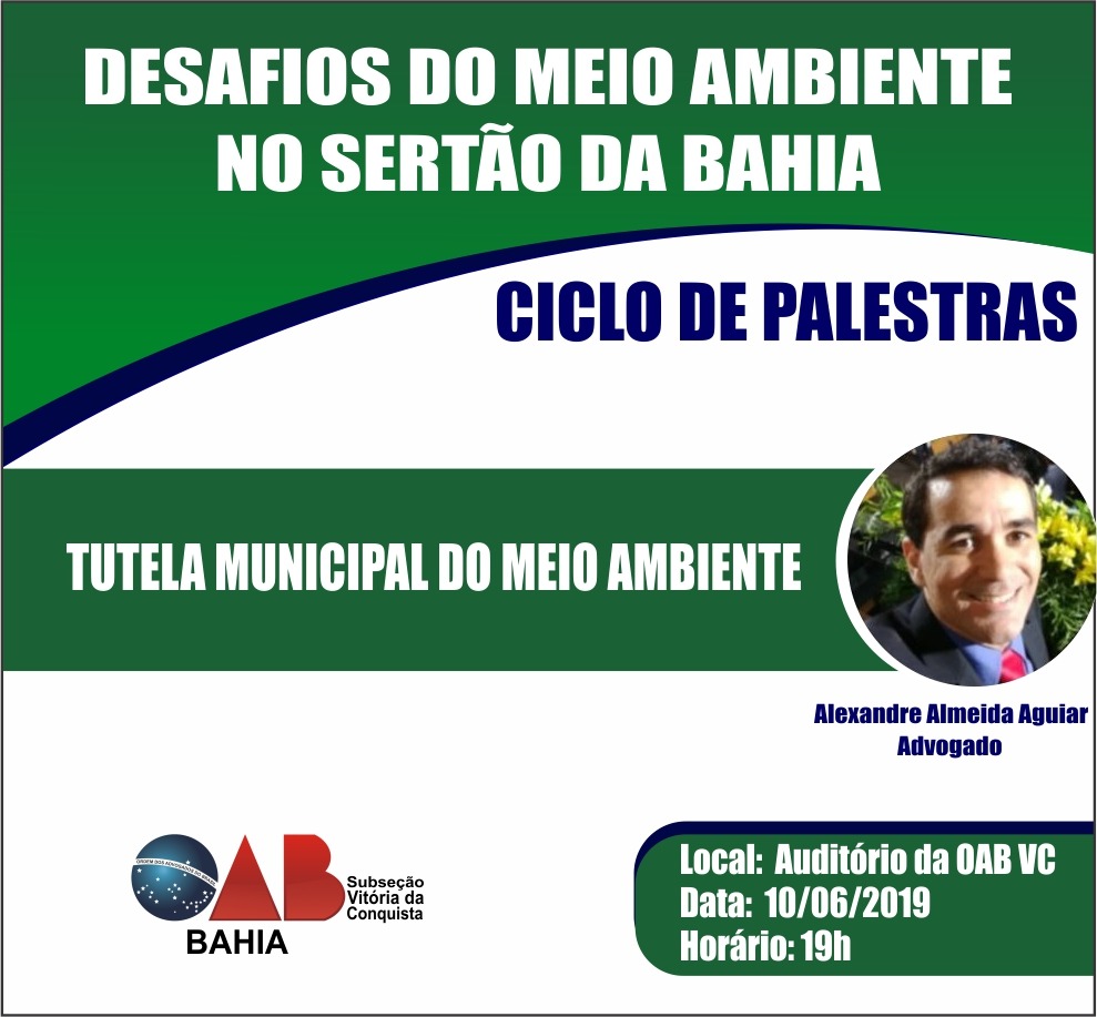 Atenta a esse problema, a OAB de Vitória da Conquista realizará na sua sede um debate com sugestivo título: Desafios do Meio Ambiente no Sertão da Bahia. O palestrante será o advogado Alexandre Aguiar e ocorrerá às 19h do próximo dia 10, segunda-feira.