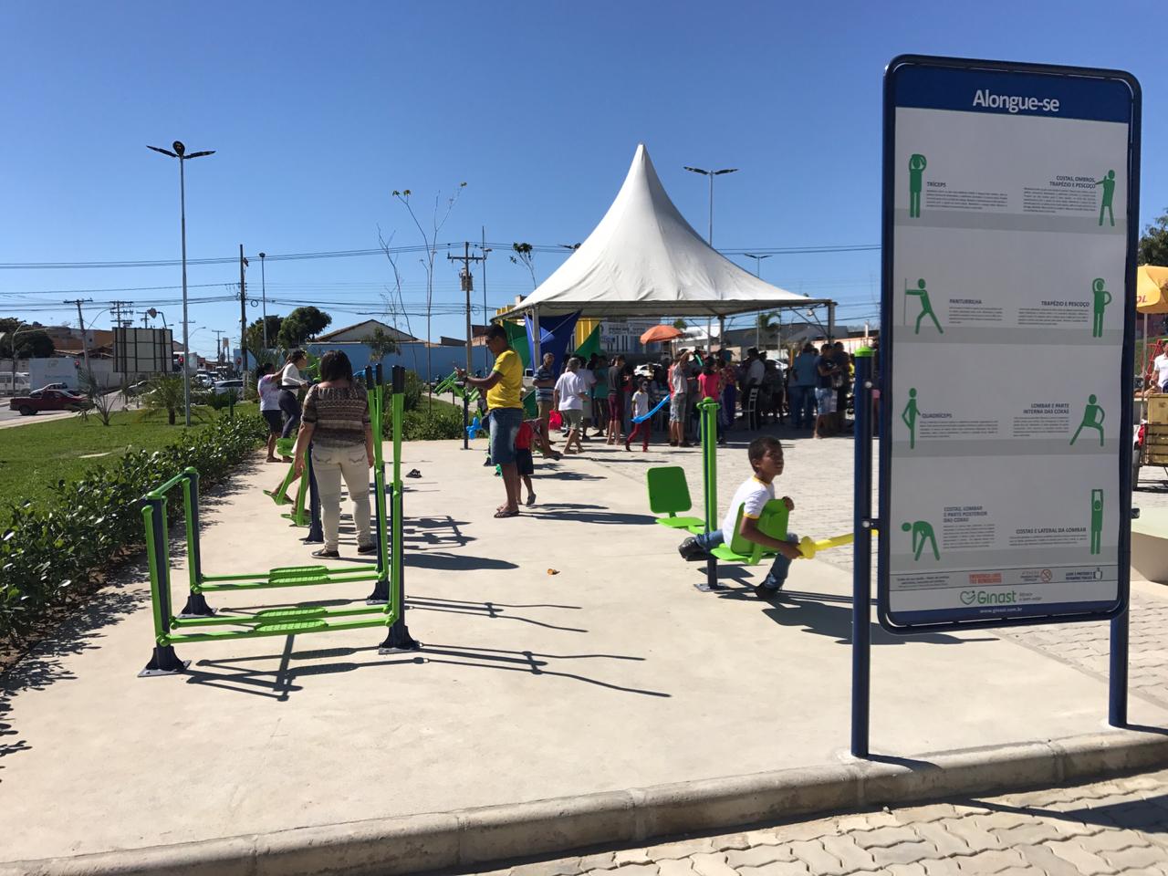 Na manhã de ontem o astro rei brilhou intensamente, como se quisesse saudar o povo que saiu de casa para assistir a entrega da Praça Norberto Aurich feita pelo prefeito Herzem Gusmão e que contou com a execução da obra pela Pel Construtora numa negociação que o prefeito interpreta como “muito boa para as duas partes, para o município e para a Pel. E mais ainda, muito melhor para a população que recebe uma praça moderna, com quadra, campo de futebol e uma bela academia ao ar livre composta de aparelhos modernos”.