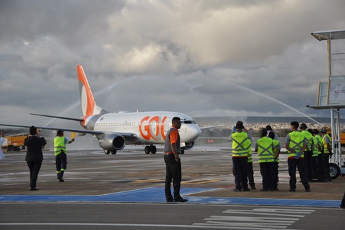 O batismo aconteceu na pista do aeroporto, jatos de água do carro do Corpo de Bombeiros foram lançados sobre o Boeing 737-700 que aterrissou com 137 passageiros, ficando apenas um assento vazio. O batismo da aeronave é um ritual normal, o “banho de água” faz parte da festa, é um momento de celebração para todos. Em seguida o prefeito Herzem Gusmão cortou a fita que dá acesso ao salão de desembarque.
