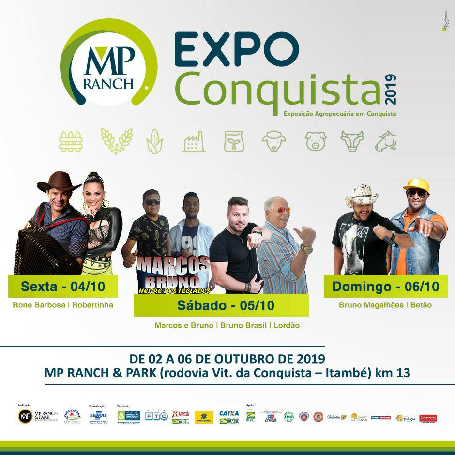 De 02 a 06 de outubro acontecerá no MP Ranch a Expoconquista, evento que tradicionalmente acontece no Parque de Exposições, mas que pela primeira vez em toda sua história deixou de acontecer por decisão da atual diretoria da Coopmac, depois de consulta ao seu quadro de associados. :: LEIA MAIS »