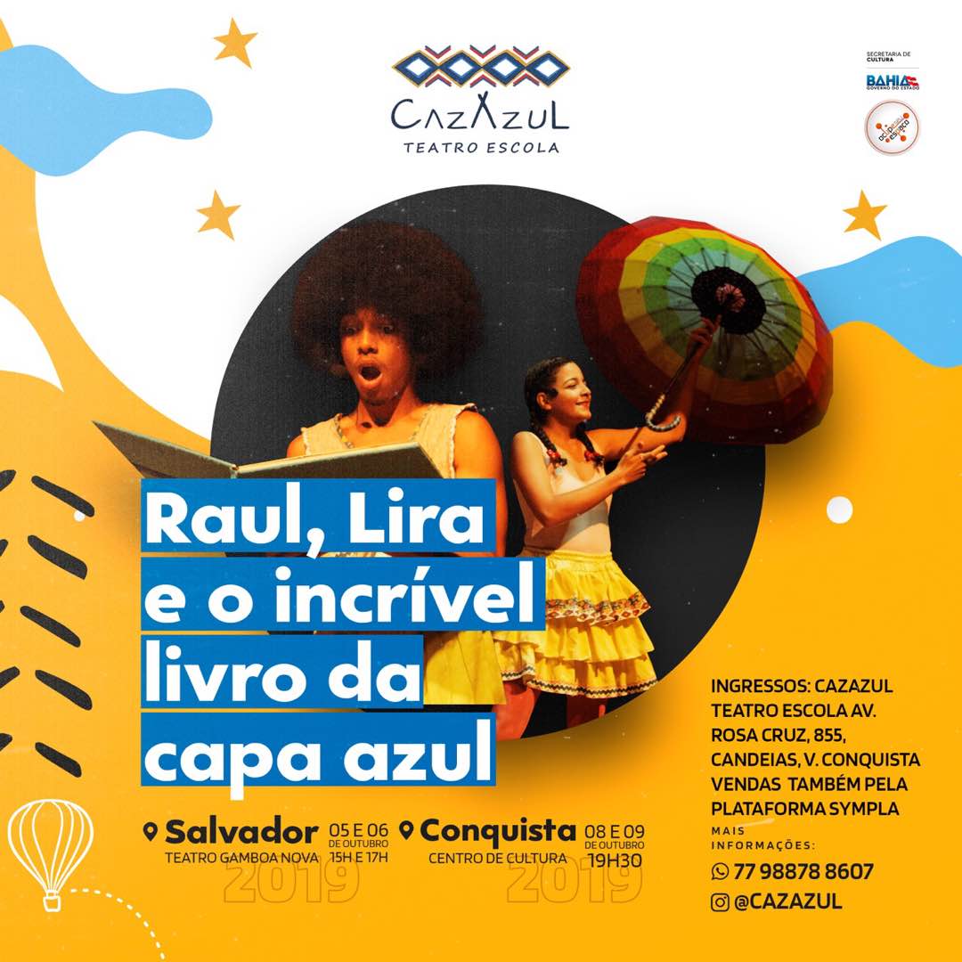 Brincar de imaginar é tão divertido quanto o uso de aparelhos tecnológicos, este é o ponto de partida de “Raul, Lira e o Incrível Livro da Capa Azul”, espetáculo teatral que a CazAzul Teatro-Escola apresenta nesse mês das crianças em Salvador e em Vitória da Conquista. As apresentações acontecem nos dias 5, 6, 8 e 9 de outubro, no Teatro Gamboa Nova e no Centro de Cultura Camillo de Jesus Lima.
