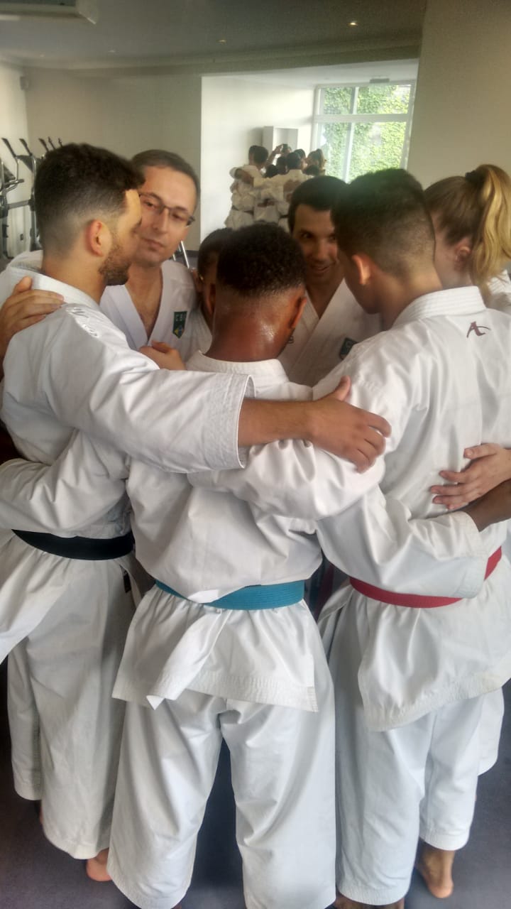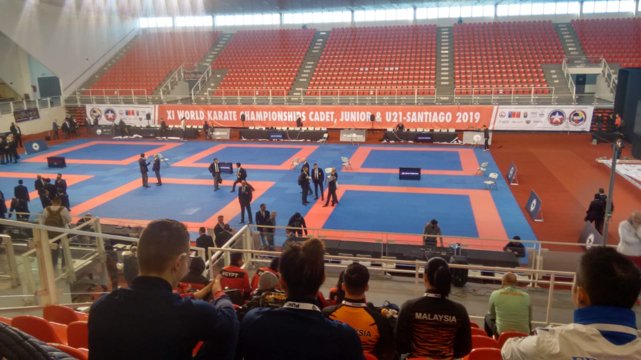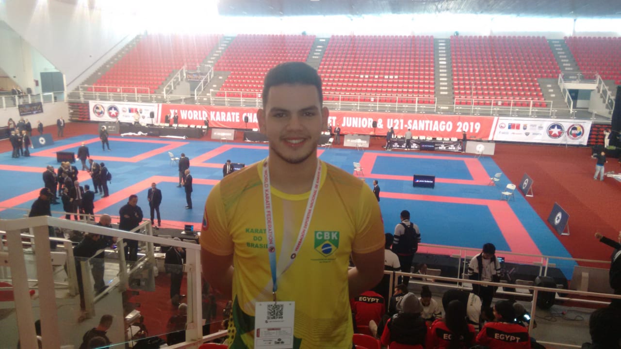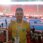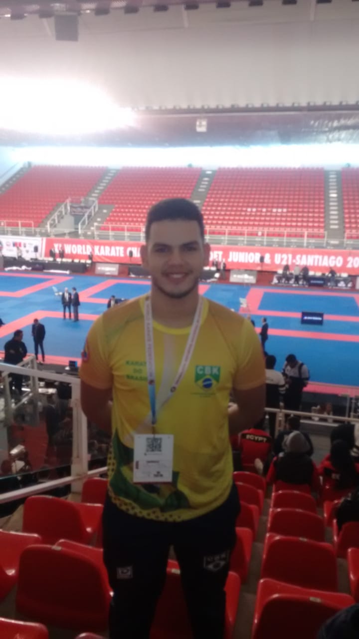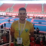 Atleta conquistense, Isaac Matos já se encontra no ginásio. É o Mundial de Karatê no Chile