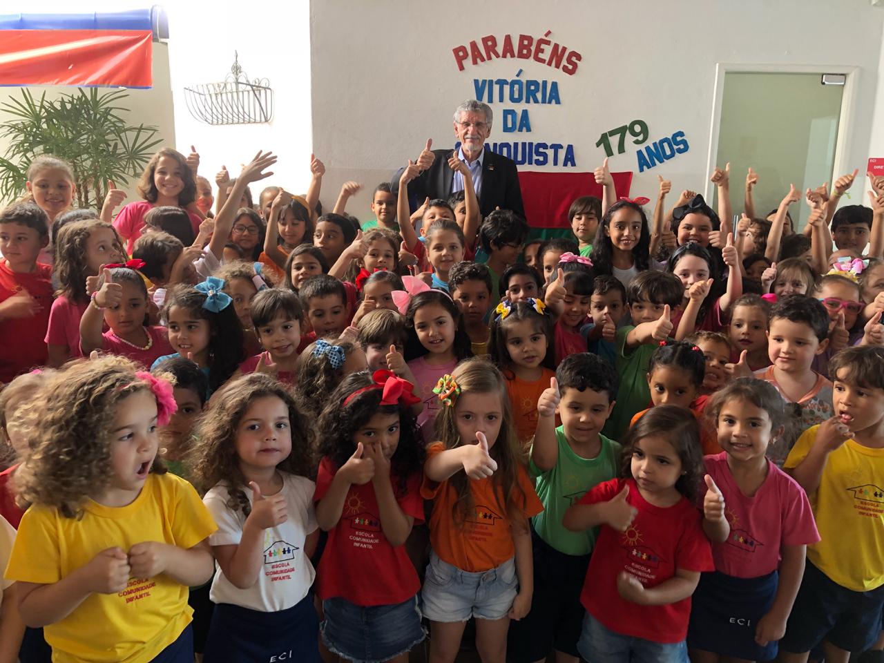 Prefeito Herzem Gusmão vai a escola e fala da cidade para crianças