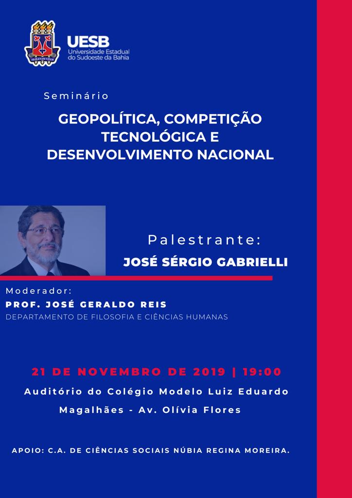 No próximo dia 21 de novembro, quinta-feira, às 19h no Colégio Modelo, o ex presidente da Petrobras, José Sérgio Gabrielle, fará palestra com entrada franca e terá como moderador o conquistense Geraldo Reis.