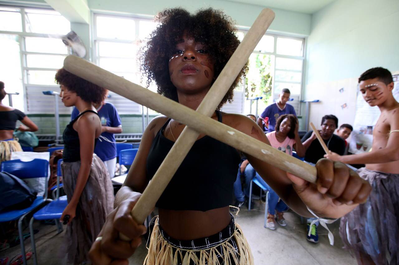 Os alunos do João das Botas dividiram as apresentações e em cada sala foi possível acompanhar uma manifestação diferente da cultura negra. Do maculelê à capoeira, passando por religiões de matriz africana, professores e estudantes se empenharam em retratar capítulos importantes do povo negro. A estudante do primeiro ano, Débora Vitória, se sentiu muito orgulhosa por dar vida a Oxum. “Estamos ligados à nossa ancestralidade, nossos antepassados, e se estamos aqui hoje é graças a eles. Consciência Negra, para mim, é ser grata e relembrar toda a trajetória de quem lutou por todos nós”, afirmou a jovem.