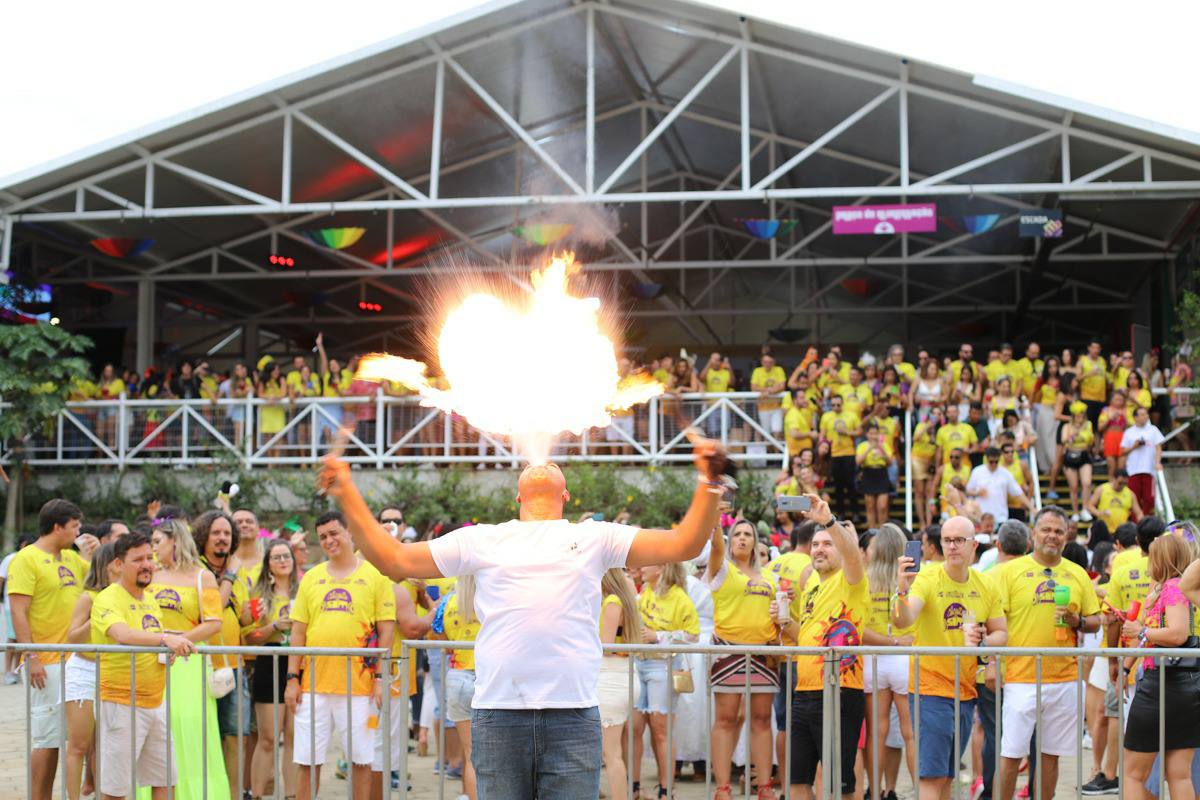 O clima já era absolutamente de micareta, a alegria e alto astral dos foliões já nos remetiam a nossa inesquecível Miconquista. Performance apresentada por coreógrafos no palco 360, uma banda percussiva formada exclusivamente por mulheres deram um toque especial ao conjunto da festa.