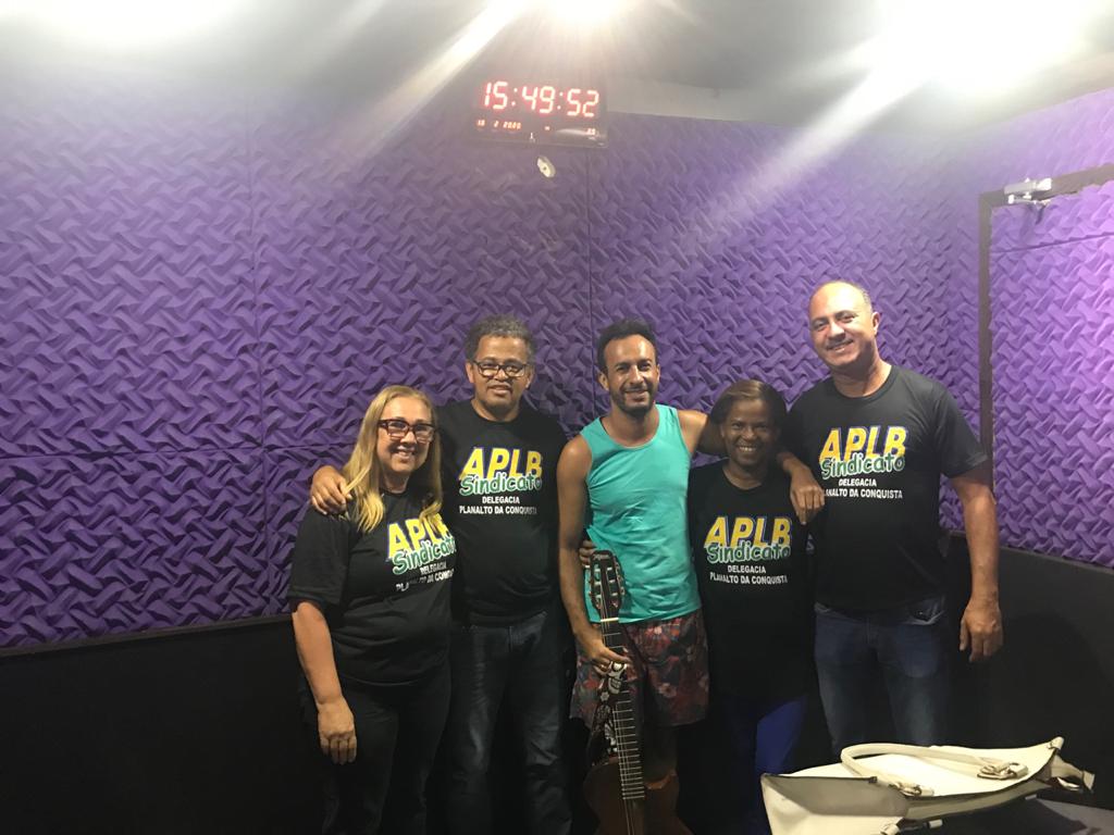 As fotos apresentam os professores (APLB) em três momentos: na Câmara Municipal, no auditório do NTE, no Conquista Center, e no estúdio quando gravaram entrevista para o nosso programa Agito Geral, apresentado de segunda à sexta-feira, pela Transamérica 100,1.