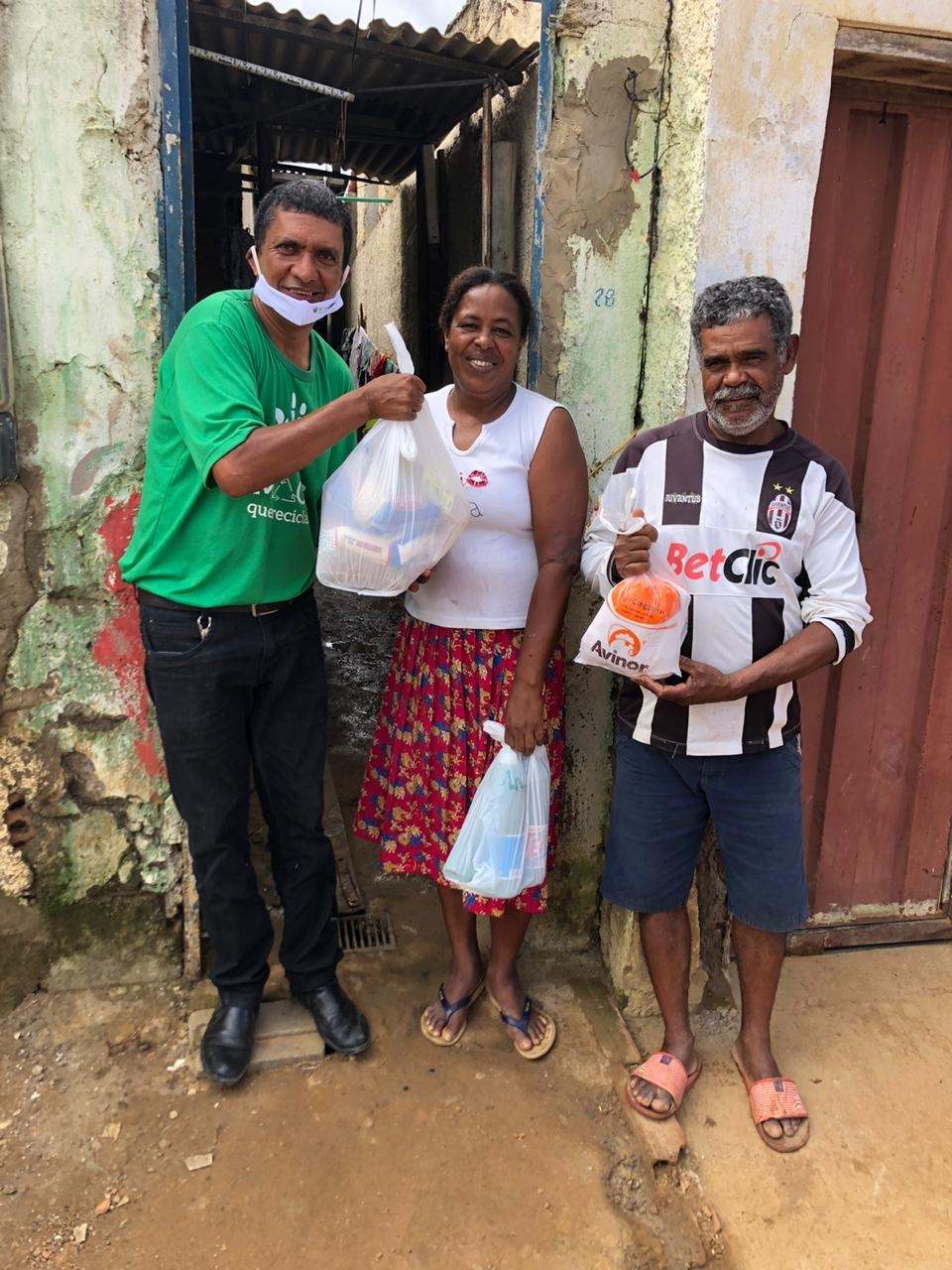 “Ontem, mais um dia de vivência com famílias simples, inocentes, desinformadas, carentes, felizes, tristes, trabalhadoras, resistentes, crentes, esperançosas… alguns sentimentos que externamos nos “clicks” do nosso dia de solidariedade na distribuição das 100 cestas básicas, kits de materiais de limpeza Teiu, ZAB e frangos Avinor para os “catadores” cadastrados no projeto “Mãos que Reciclam” da Defensoria Pública da Bahia em parceria com o Rotary Club, Lojas Maçônica Cavalheiros do Oriente, Corpo de Bombeiros, Conselho de Segurança (CONSEG) e doadores da Pirâmide da Solidariedade!!!