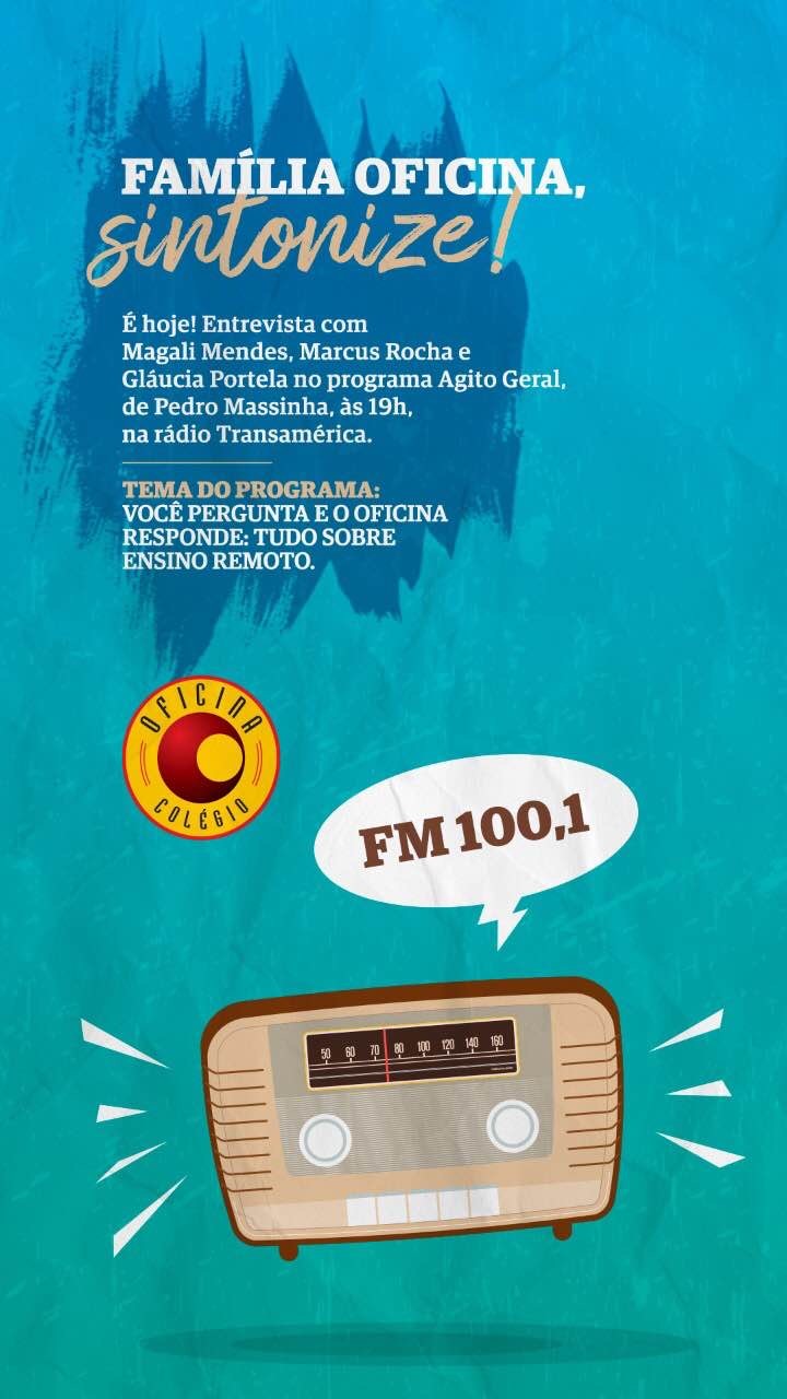 Hoje no nosso programa Agito Geral, levado ao ar às 19h pela Transamérica 100,1, teremos três profissionais da educação que nos trarão informações importantes que não servirão apenas aos alunos e pais do Colégio Oficina, mas também aos ouvintes, aos responsáveis por jovens que estão matriculados na rede particular dado as explicações didáticas, transparentes, objetivas e que servirão como exemplo para àqueles que possam ter dúvidas em relação ao funcionamento das escolas particulares em nossa cidade.