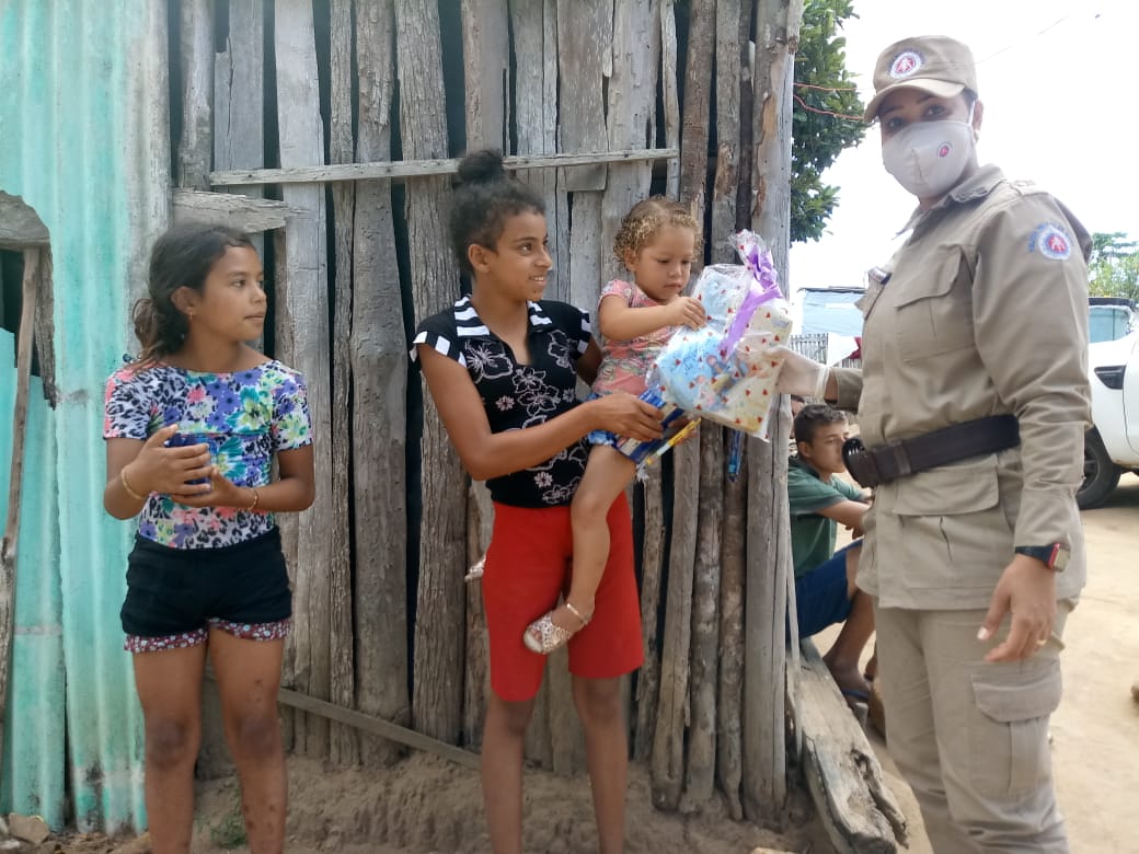 As crianças foram contempladas com roupas, sandálias, sapatos, brinquedos e doces.
