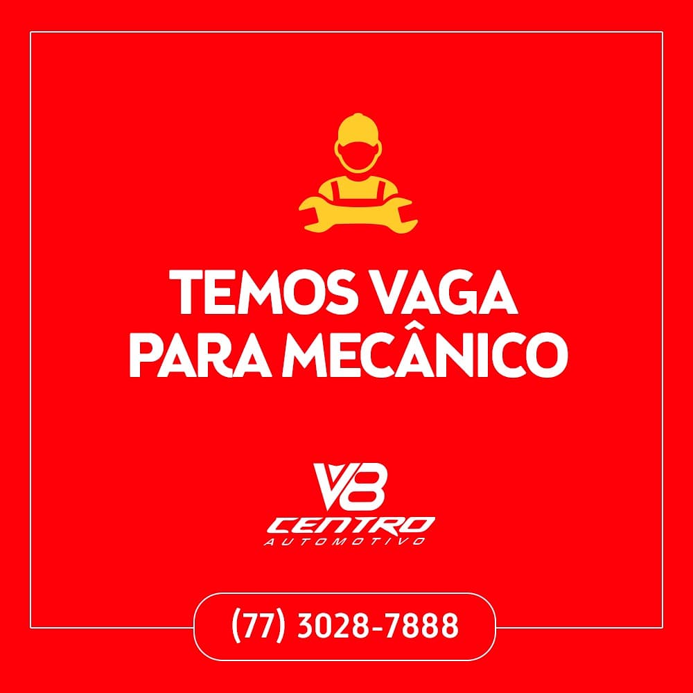 Você que é mecânico e quer fazer parte de um time vencedor, a V8 tem uma vaga pra você. Procure Murilo, faça parte de um ótimo ambiente de trabalho.