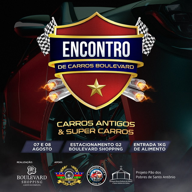 Os pais e filhos apaixonados por carros, poderão desfrutar de mais um momento juntos, na exposição de carros que acontece no Boulevard Shopping Vitória da Conquista no final de semana dos dias 07 e 08 de agosto, no Estacionamento do G2. Os clientes podem apreciar um Encontro de Carros com: super carros e carros antigos, para abrilhantar o final de semana do Dia dos Pais, uma ótima oportunidade para criação de novas memórias de momento entre pais e filhos.