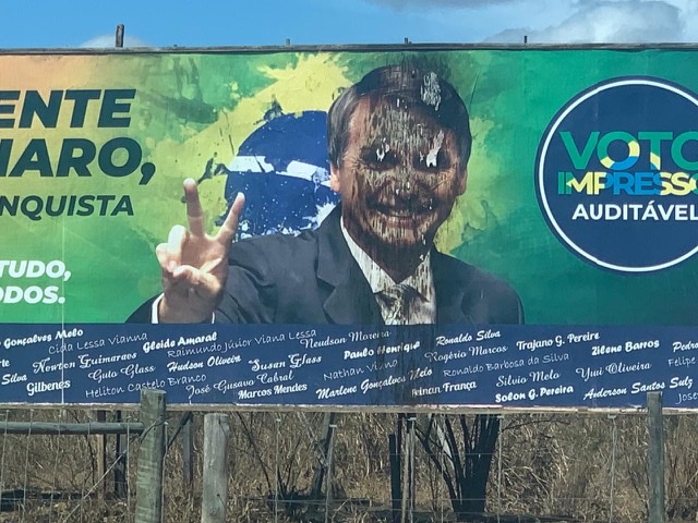Bolsonaristas reclamam que os vândalos danificaram os outdoors e chegaram a queimar uma unidade, dando clara demonstração de intolerância.