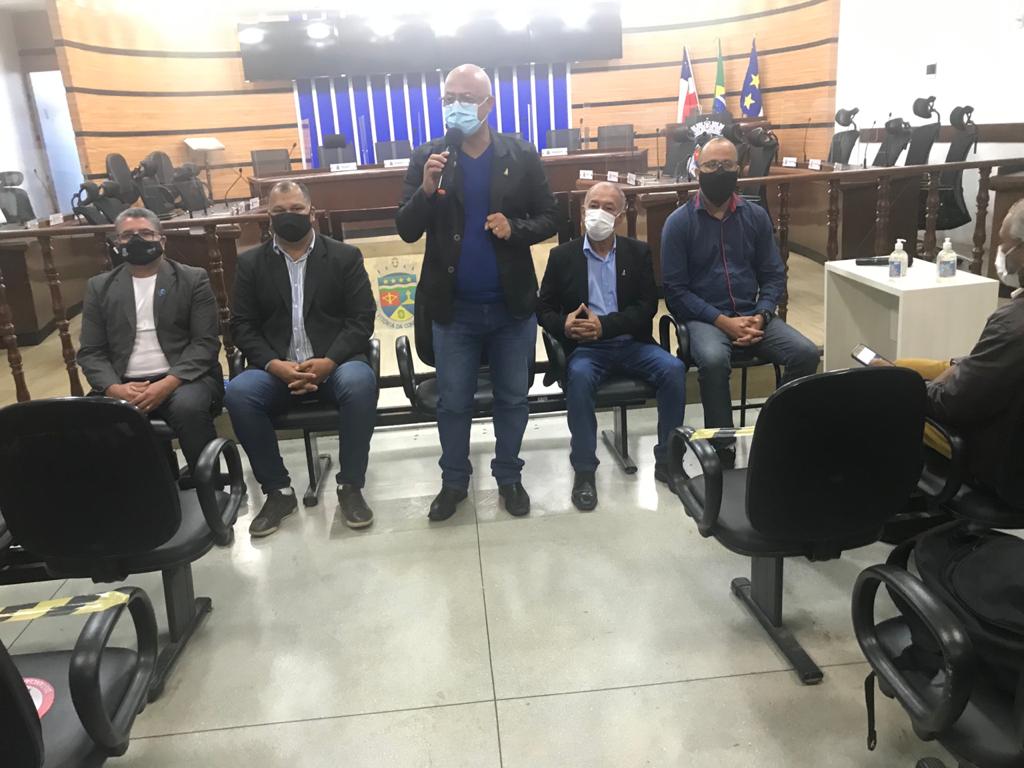 O presidente da Câmara de Vereadores de Vitória da Conquista, Carlos Dudé, e os vereadores Hermínio Oliveira, Nelson de Vivi, Pastor Orlando e Nildo Freitas, membros da Mesa Diretora, receberam a imprensa na plenário Carmem Lúcia para informar que o Legislativo conquistense debaterá com a população da nossa cidade os diversos problemas que nos atinge, só que de forma presencial, como sempre foi.