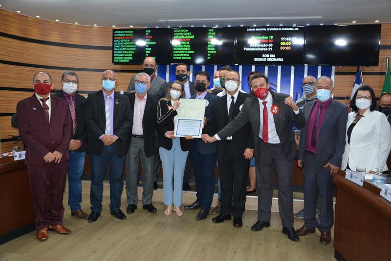 Com as presenças do deputado Waldenor Pereira e do presidente Isac Bomfim, o PT é homenageado na Câmara