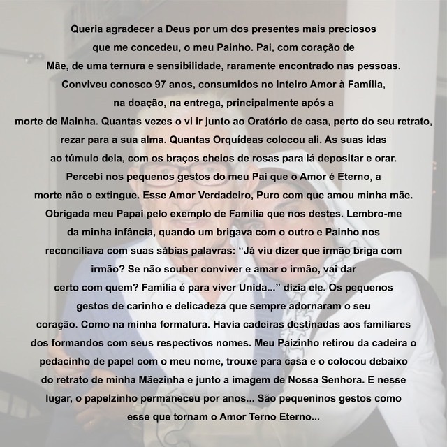 A sua filha caçula Maria Jacinta escreveu esta linda mensagem em homenagem ao seu estimado e admirável pai: