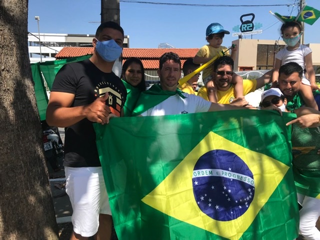 Vimos uma longa carreata, margeando a Rua Siqueira Campos grupos seguiam andando e cantando o hino nacional que ecoava no carro de som que serviu de palanque para os organizadores que afirmaram: “aqui não é evento de partidos, somos todos filhos de Deus, a quem pedimos para proteger o nosso país e o nosso povo”, disse uma senhora, uma pastora que elogiou o clima de paz que reinava no ambiente.