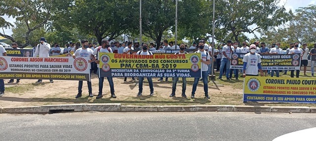 Um grupo de aprovados no concurso público da Polícia Militar (PMBA), realizado em 2019, realizou uma manifestação, em frente a Secretaria de Administração do Estado da Bahia (Saeb), em Salvador, na manhã desta quinta-feira (16). Eles reivindicam a continuação das etapas de todos os homologados no certame.