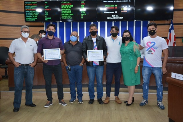 Ontem o plenário Carmem Lúcia da Câmara de Vereadores de Vitória da Conquista esteve tomado de gente que assistiu a homenagem que foi prestada ao jovem presidente do Sindicato dos Rodoviários (Sintravc) e toda a sua diretoria por iniciativa da vereadora Lúcia Rocha, que apresentou uma Moção de Aplauso ao sindicato que cuida dos associados com muito compromisso e cuidado.