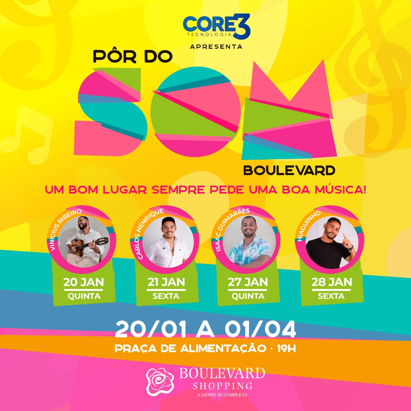 Verão combina com boa música, que combina com diversão, que combina com o Boulevard Shopping Vitória da Conquista. A partir desta quinta-feira, 20, o empreendimento inicia mais uma edição do projeto Pôr do Som Boulevard.