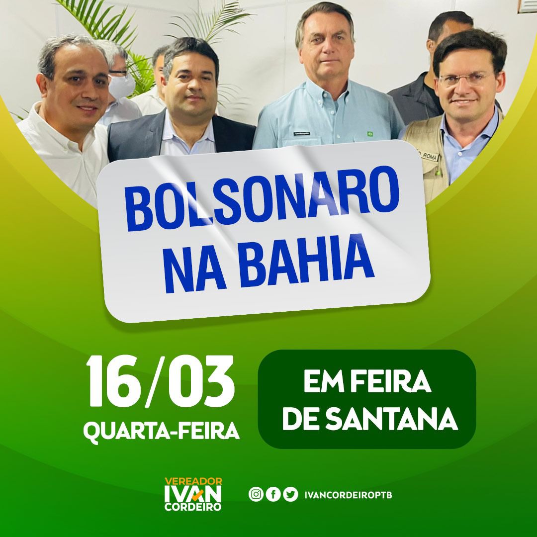 Ivan Cordeiro confirma presença de Bolsonaro em Feira de Santana em 16/03