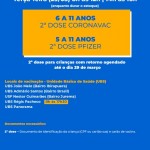 Ainda continua suspensa a 1ª dose para crianças de 5 a 11 anos, pois o município segue aguardando um novo recebimento de vacinas pediátricas para este público, mas ainda sem previsão.
