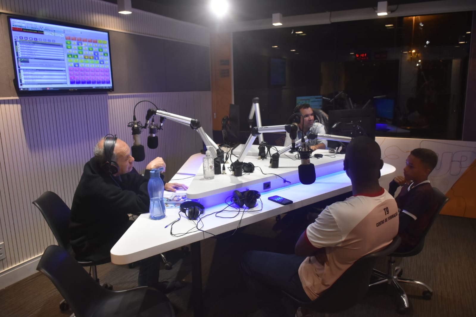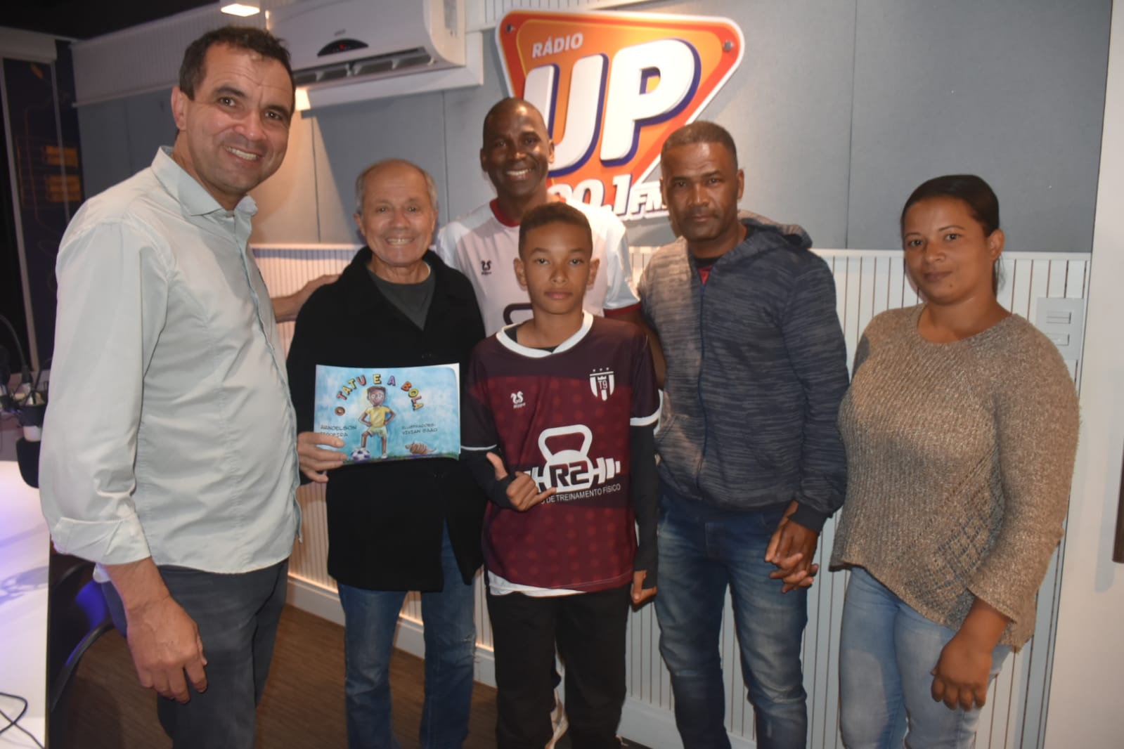 Observado pelos pais que estavam no estúdio, Davi começou a falar da sua vida “comecei como lateral direito, depois fui para a ponta e hoje sou meia esquerda”, disse esfregando uma mão na outra expressando a sua timidez. “Eu estudo, meus pais só deixam eu treinar se estudar”, nos tranquiliza o garoto.