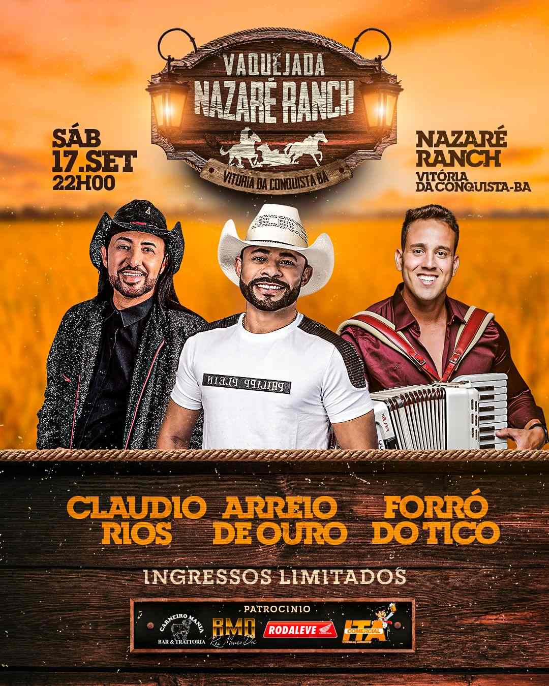 Neste sábado, 17, Conquista será palco de uma grande festa de vaquejada, tendo como local o tradicional Nazaré Ranch, que dispensa comentários, pois ali sempre foi palco de grandes e organizadas festas, onde tudo é levado muito a sério e cuidado com muito carinho, desde a estrutura, segurança, ótima alimentação, além de cerveja gelada e, claro, muita atração boa.