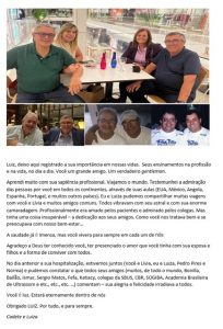 “Com muita tristeza, perdemos hoje um dos melhores amigos, um amigo muito querido, Dr. Luiz Machado. Luiz, você será sempre para nós uma referência como um dos melhores profissionais que conhecemos e um ser humano excepcional.