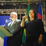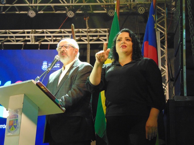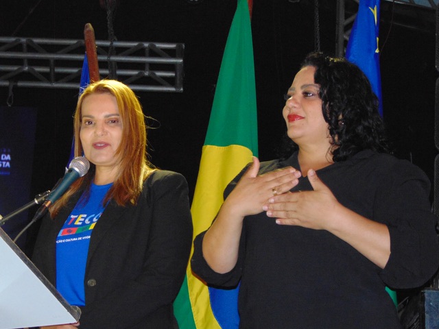 A prefeita Sheila Lemos compareceu à abertura do evento, ficou maravilhada com tudo, com a estrutura, com as atividades e com a palestra que aconteceu na manhã de hoje, contando com a participação de mais de dois mil professores inscritos antecipadamente.