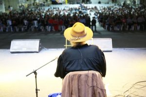 A volta do gigante. Elomar canta com o público em evento de educação e cultura da Prefeitura de Vitória da Conquista
