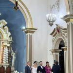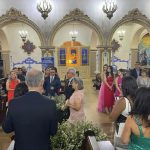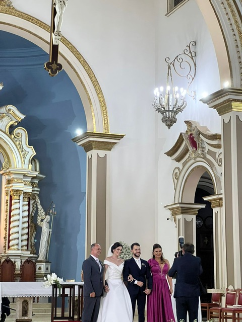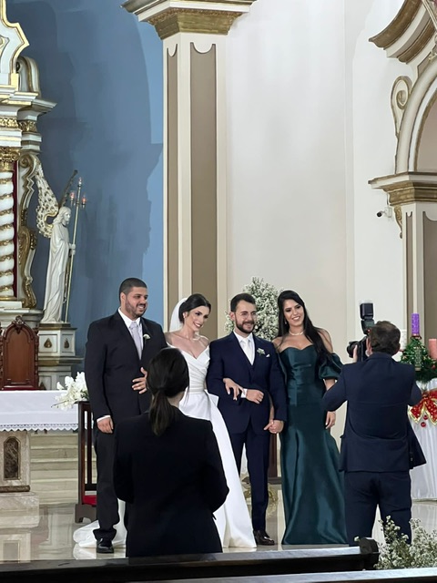 Entre risos e abraços, o jovem casal subiu ao altar e foi abençoado por Deus diante de familiares e amigos.