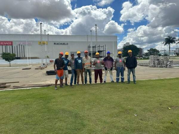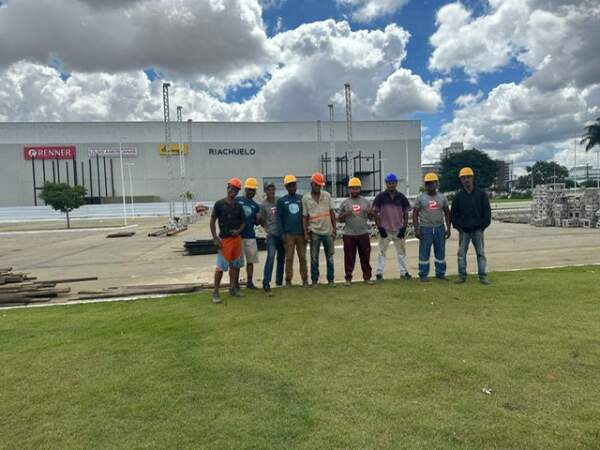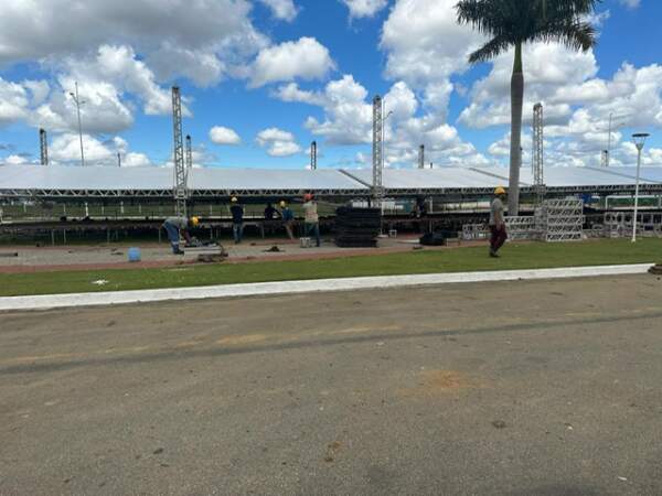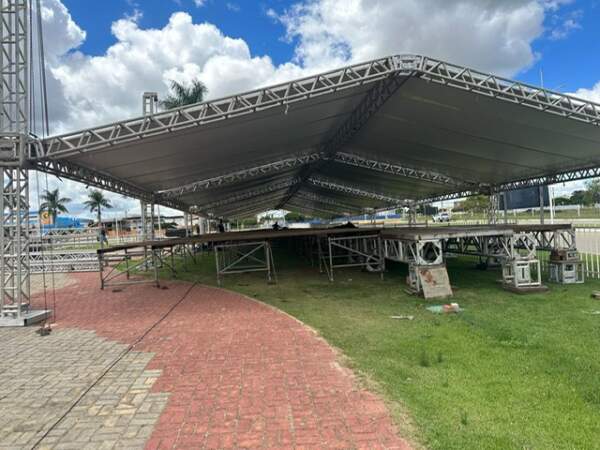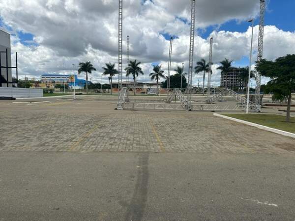 Quem passar pela Olívia Flores, mesmo não entrando no Boulevard Shopping, já pode ver como parte da estrutura de camarote e palco já está bastante adiantada, e no próximo final de semana “queremos estar com quase tudo pronto”, diz Macarrão, o responsável pela edificação dos serviços.