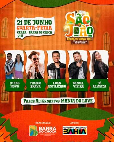 Com o seu clima frio, convidativo, Barra do Choça promete “pegar fogo”, incendiar os corações de nativos e turistas durante os dias de festa que começa amanhã, 17, com a programação que segue abaixo.
