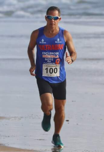 “No final de 2010 fui diagnosticado com Esclerose Múltipla. Perdi todos movimentos do lado esquerdo do corpo, tive dupla visão, paralisia facial, dificuldade na dicção entre outros sintomas. Sem perspectiva de melhora. Porém, sempre acreditei em Deus e com muita determinação, disciplina no tratamento, consegui recuperar. Eu era sedentário e não fazia atividade física. Depois de 4 anos diagnosticado, minha esposa entrou em um grupo de corrida para me estimular.